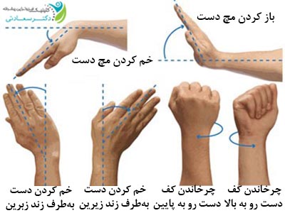 - کشیدن عضلات بازکنندهی مچ دست (کف دست رو به بالا)