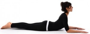 - نفس را داخل بکشید و اجازه دهید در حین نگاه کردن به سمت بالا و سقف، شکم به سمت پایین و کف زمین بیفتد. این حالت را 2 ثانیه حفظ کنید.