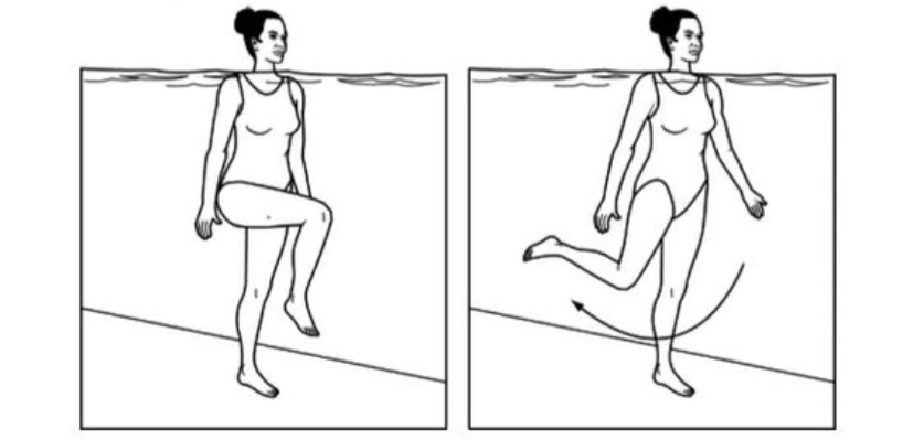 به طور طبیعی فشار بر روی اعصاب کمر را که ممکن است به تشدید درد پا کمک کند، با این تمرین در  آب کاهش دهید. در حالی که ایستاده اید یک پا را به سرعت یا به آرامی بلند کنید. در حالی که پای بلند شده را تا جایی که می توانید به راحتی دراز کنید و زانوی خود را خم و صاف کنید.